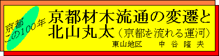 流通が陸運にとって変わっても、 「京都府の木」 として選定された北山杉 (昭和41年) を原料とする、 美しい北山磨丸太は21世紀以降にも末永く残ってほしいものである。